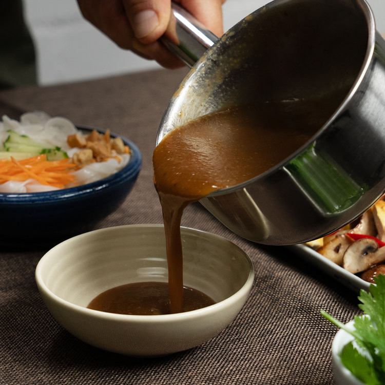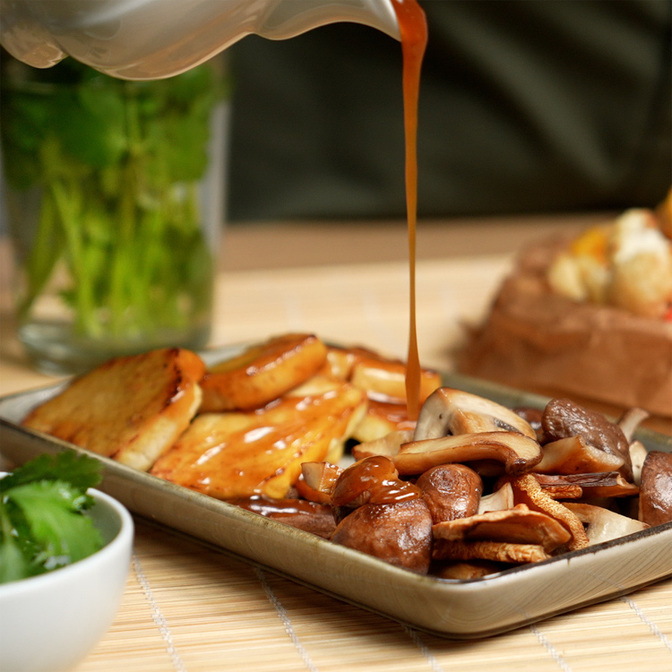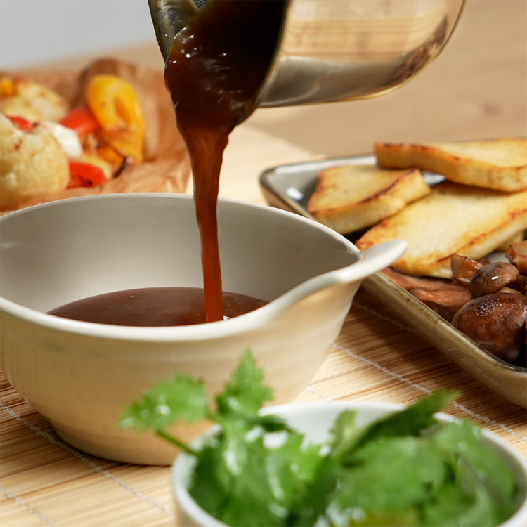 Die traditionelle Austernsauce stammt ursprünglich aus der kantonesischen Küche und wird klassisch aus Austern hergestellt. Sie ist für ihr intensives Umami und die feine Balance aus salzig, süß und würzig bekannt – und gilt als unverzichtbare Komponente bei vielen asiatischen Gerichten. Unsere vegane Variante bringt durch Shiitake-Pilze, Tamari, Edelhefeflocken und Gewürze dieselbe Tiefe und Fülle an Geschmack auf den Teller. Die cremige Sauce passt zu Gemüsegerichten, gebratenen Nudeln und Tofu.