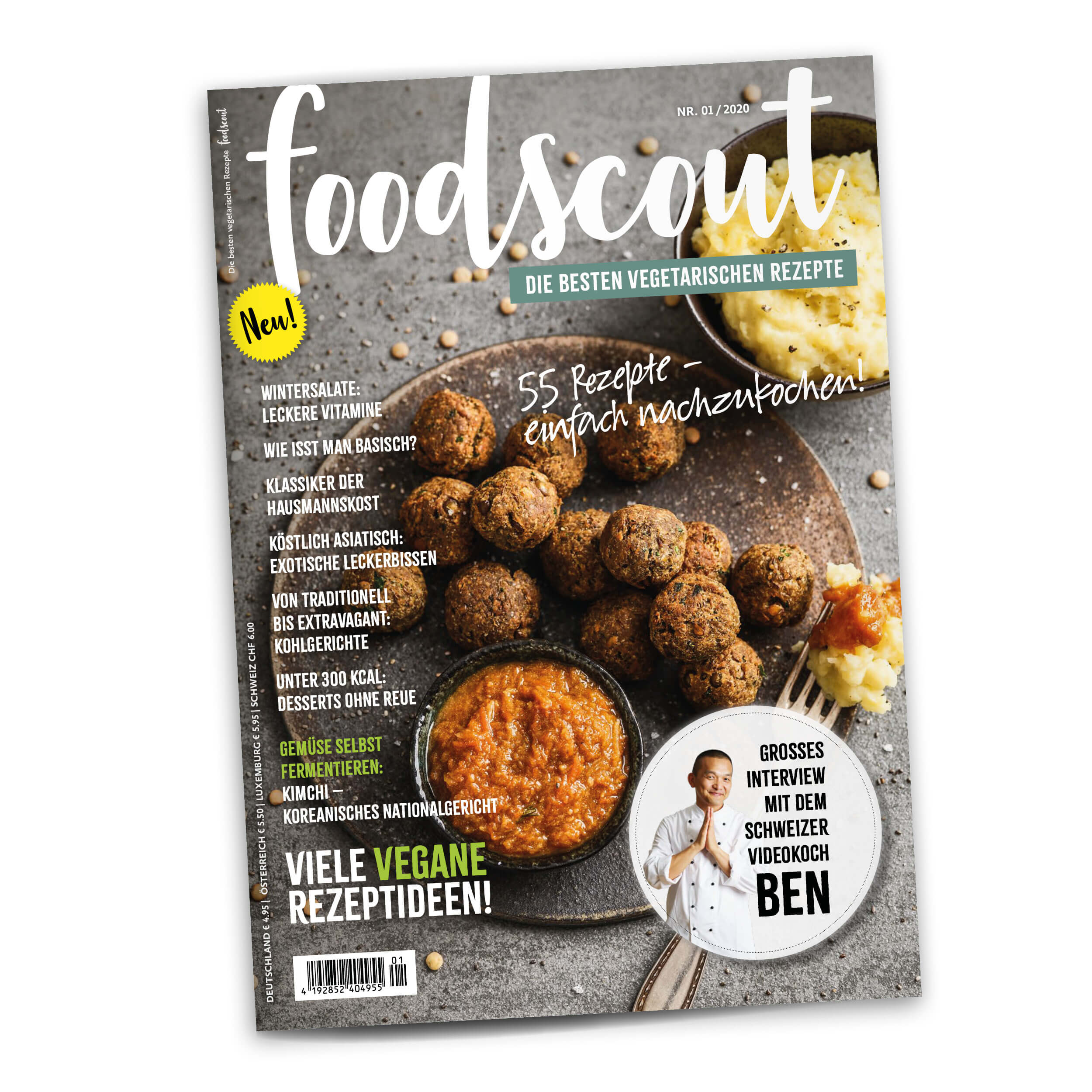 Jetzt als praktischer PDF-Download: Ausgabe 1 von Foodscout, dem neuen Magazin für die gesunde, pflanzliche Küche. Entdecken Sie auf 100 illustrierten Seiten abwechslungsreiche, von den Köchen des ZDG erprobte Rezepte der veganen und vegetarischen Küche! Foodscout bietet aber noch viel mehr als Rezepte zum Nachkochen: In ausführlichen Schwerpunktthemen erfahren Sie mehr über bestimmte Zutaten, Landesküchen oder Zubereitungsmethoden.