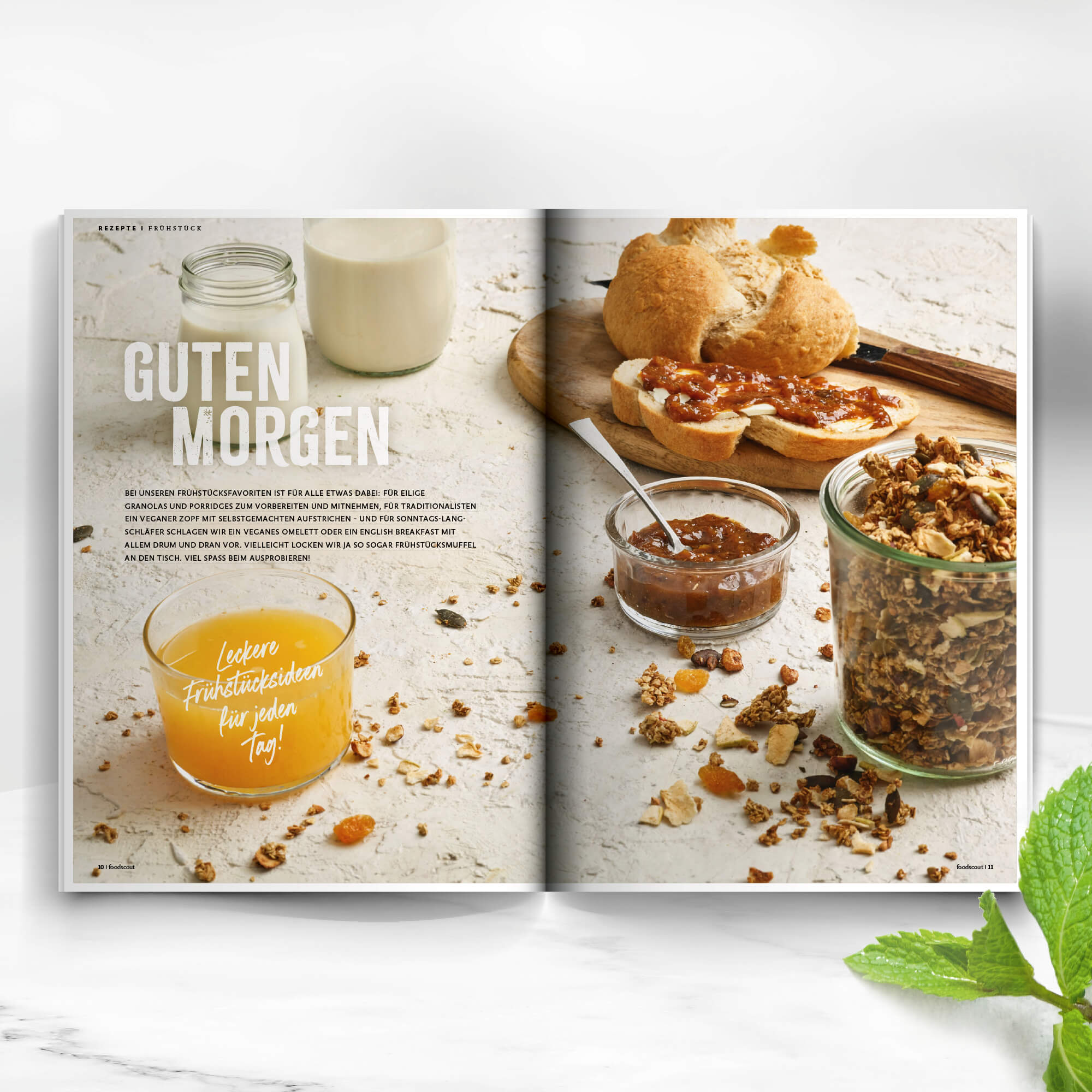 Dazu gibt es einen feinen Frühstückszopf aus Vollkorn-Dinkelmehl, der selbst von Anfängern schnell gebacken ist. Und wenn Sie eher der Müsli-Typ sind, dann probieren Sie das Granola mit Himbeeren oder jenes mit Apfel und Zimt. Statt Milch giessen Sie den selbst gemachten Haferdrink darüber oder geben einen Klecks Mandel-Joghurt oben auf. Die Rezepte für Drink und Joghurt gibt es natürlich ebenfalls in der neuen Winter-foodscout – genauso wie den köstlichen veganen Frischkäse und das vegane Omelett, das mit einer herzhaften Mischung aus Tomaten, Champignons und Spinat gefüllt wird. Und wenn Sie lieber wie in Asien eine Suppe frühstücken möchten, dann ist natürlich auch das möglich!