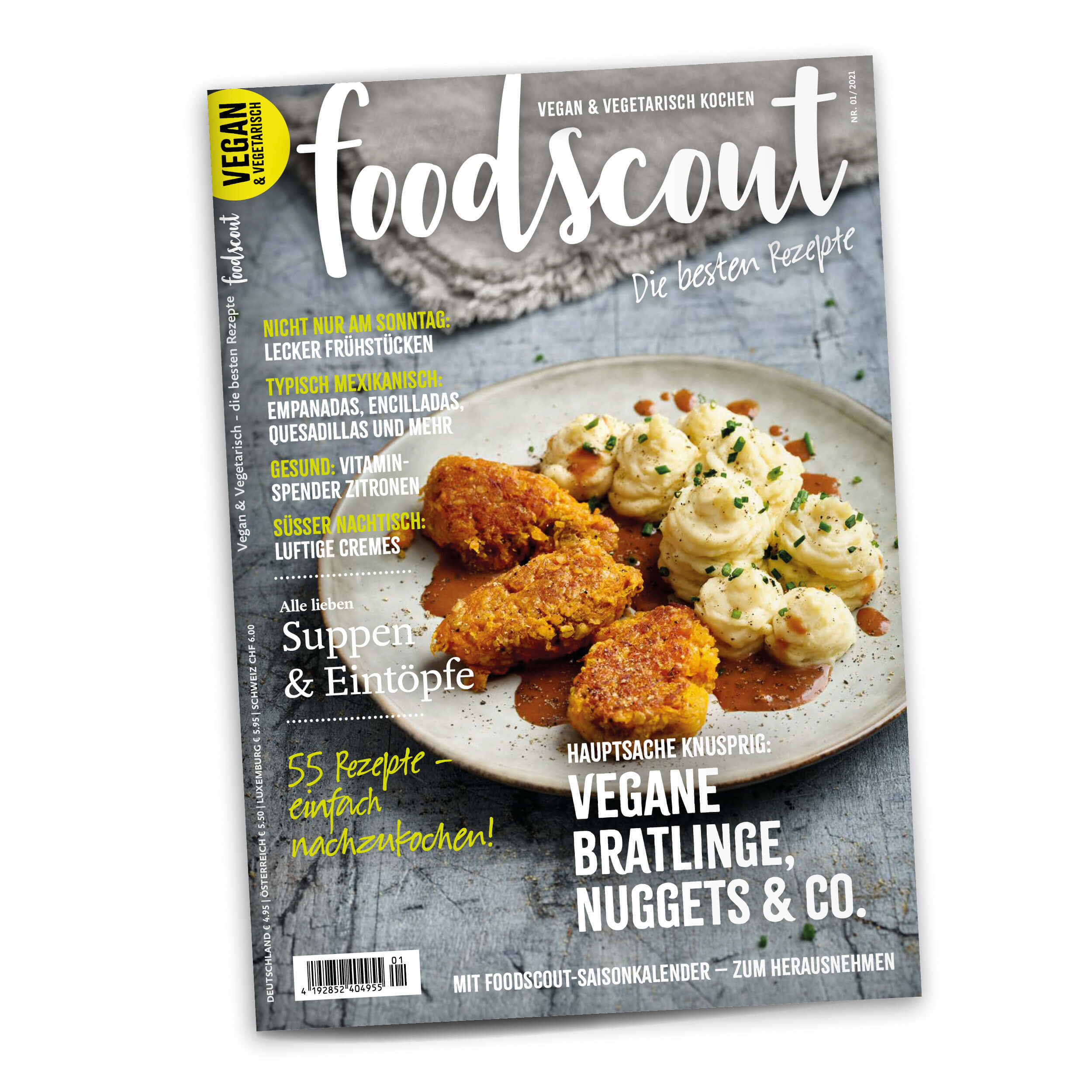 Nichts ist so schnell zubereitet und wärmt so gut von innen wie Suppen und Eintöpfe. Genauso ist kaum etwas so wandelbar und so variantenreich wie Suppen und Eintöpfe. In der neuen Winter-foodscout finden Sie dazu eine reiche Auswahl: Ob Linsensuppe, Bohnen-Eintopf, Pilzsuppe mit Flädle, Weisskohl-Eintopf mit Räuchertofu, Selleriesuppe mit Rote-Bete-Chips oder eine Senfsuppe mit Safran. Für jeden Geschmack ist etwas dabei.Bratlinge, Puffer und Nuggets
