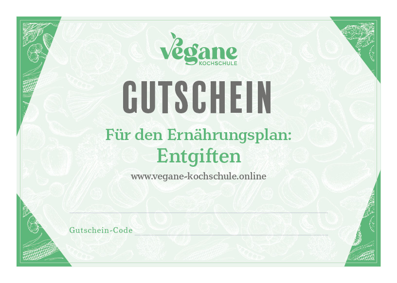 Mit diesem Gutschein verschenken Sie eine vitalstoffreiche Detox-Woche. Der Ernährungsplan umfasst 30 abwechslungsreiche vegane Rezepte für Frühstück, Mittag- und Abendessen. Die Gerichte sind leber-, nieren- und darmfreundlich, reich an Antioxidantien und Vitalstoffen – ideal, um den Körper sanft zu entgiften und das Wohlbefinden zu steigern.