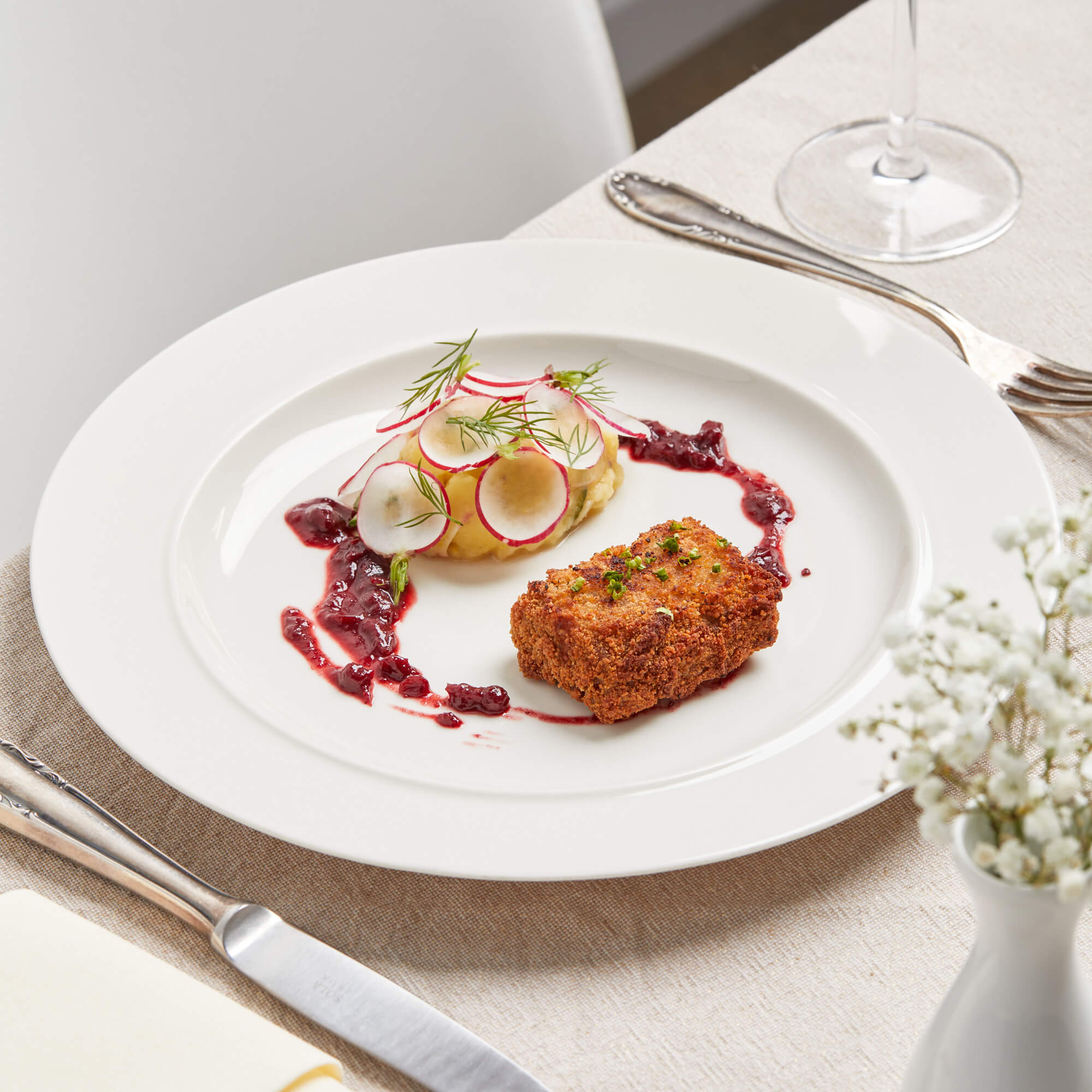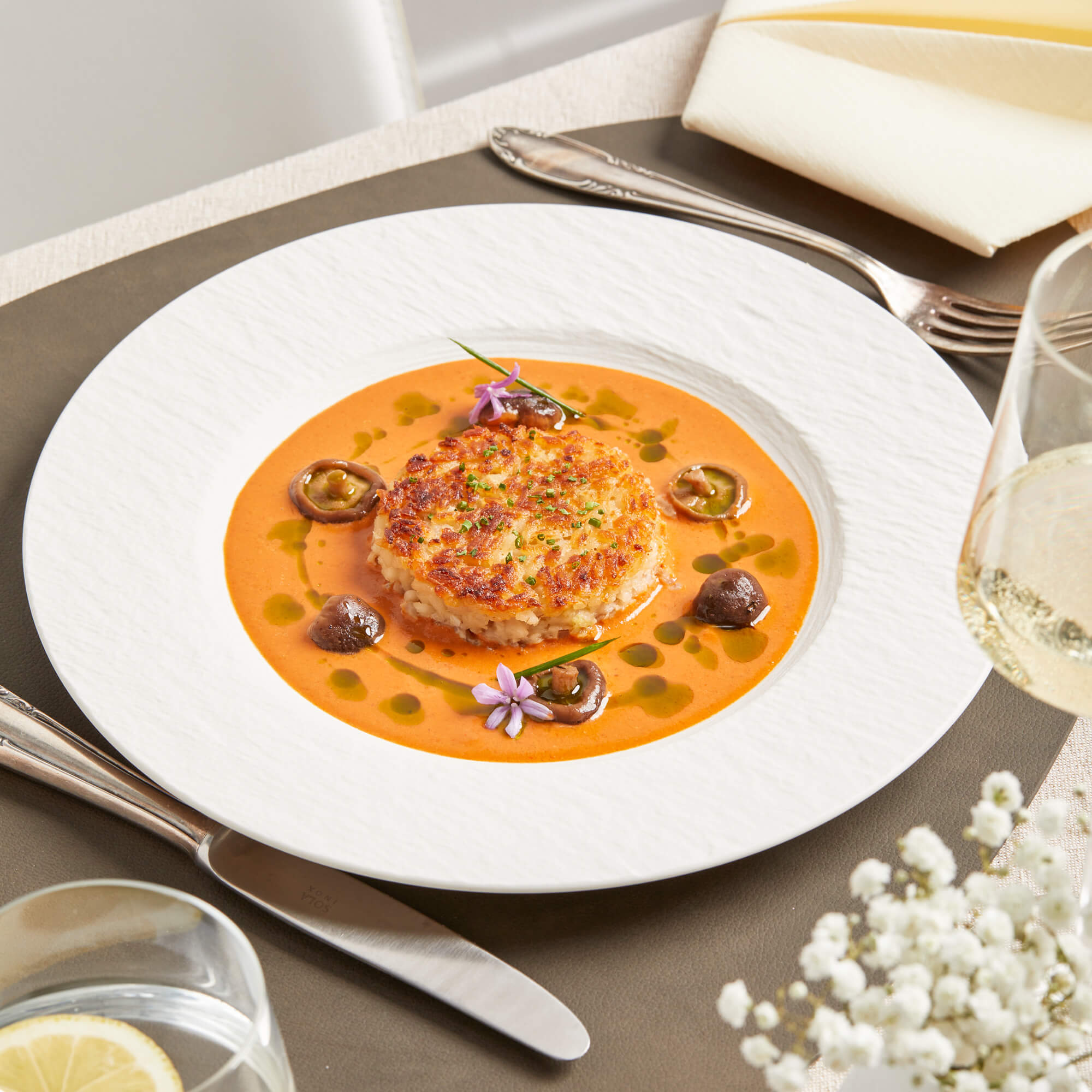 Nach Lektion 12 kannst du deinen Gästen zeigen, was in dir steckt! Das Fine-Dining-Menü de luxe zählt zur gehobenen Küche und benötigt entsprechend Zeit. Plane 3 Stunden für die Vorbereitung ein. Zwischen den Gängen sind noch einmal 5 bis 10 Minuten nötig, um die Speisen fertigzustellen und frisch zu servieren. Jedes einzelne Gericht ist ein Gaumenschmaus der Extraklasse. Du lernst, wie du herrliche Aromen in deine Speisen zauberst, wie du professionell anrichtest und wie du aus deinen Servietten einen Smoking faltest.