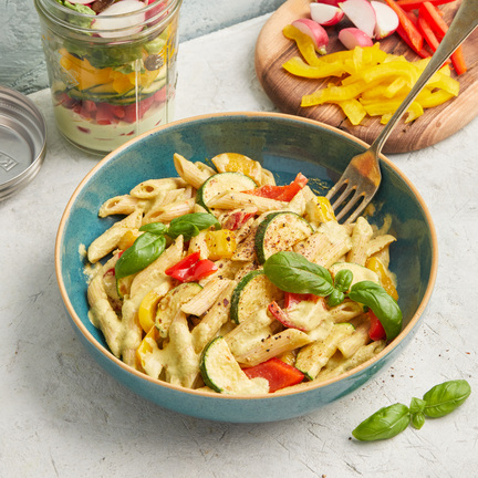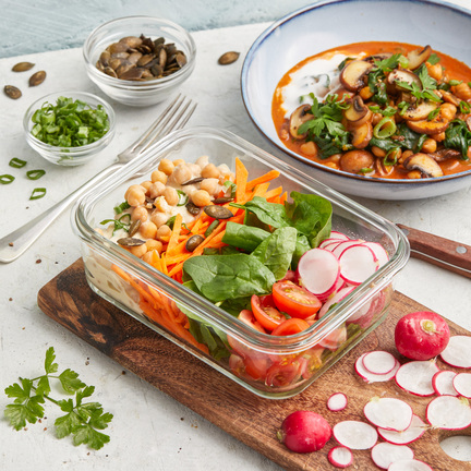 Meal Prep ist eine smarte Lösung für alle, die sich gesund und ausgewogen ernähren möchten, ohne jeden Tag viel Zeit in der Küche zu verbringen. Indem du Gerichte für mehrere Tage im Voraus zubereitest, sparst du nicht nur Zeit, sondern auch Geld. Unter der Woche musst du dir keine Gedanken mehr darüber machen, was du essen sollst. Das Risiko, auf ein ungesundes Fertiggericht zurückzugreifen, ist dadurch geringer. Zudem verhindert Meal Prep, dass Essen verschwendet wird. Denn du kaufst nur die Zutaten, die du wirklich benötigst. Unser Koch Jannis zeigt dir verschiedene Varianten, wie du all dies erreichen kannst. Meal Prep ist der Schlüssel zu einer stressfreien, gesunden Ernährung.Highlights aus dem Kochkurs